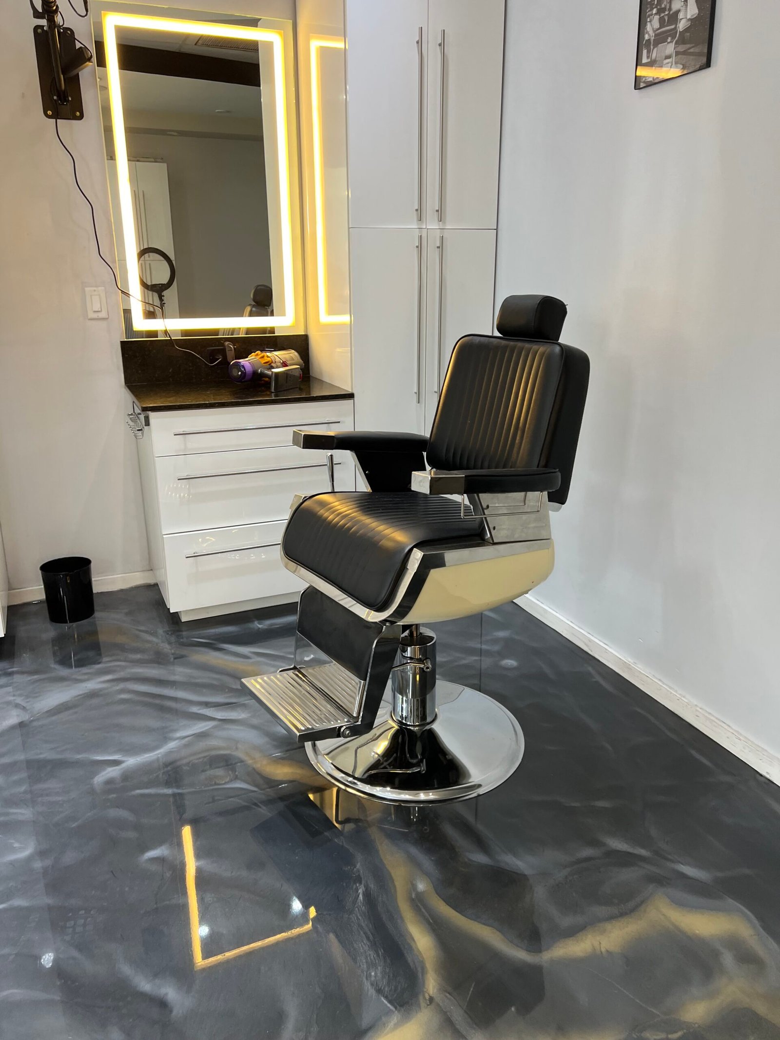 Justin creates custom metallic epoxy floors designed as original works – each surface hand-layered for depth, movement, and visual impact. For clients who want a cohesive look, optional matching countertops can be designed to complement the floor. From these signature pieces to professionally executed garage flake systems and precision concrete polishing, every project is crafted with intention and built to perform.